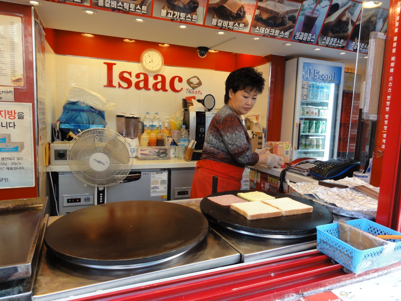 イサックはトースト専門のチェーン店。ソウル市内に屋台風の小さなお店があちこちにあります。