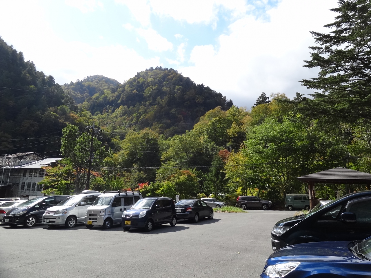 いろは坂出入口‘馬返’朝8時15分ころ通過、平日なのでいろは坂の渋滞はなく明智平近くまできました。手前になり少し渋滞‥まだ8時半前なのに駐車場はほぼ満車。