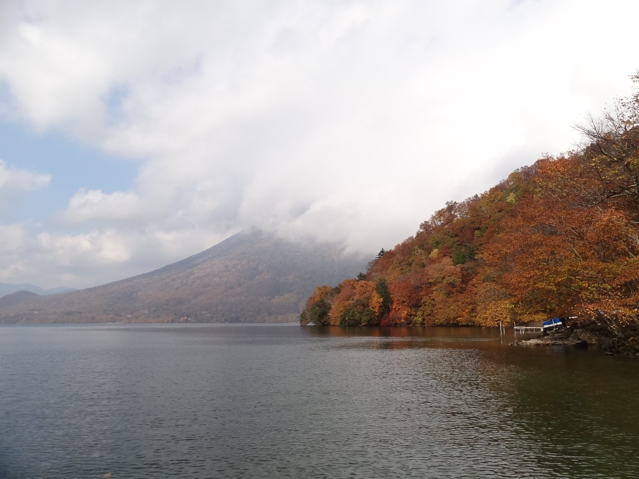 紅葉した八丁出島が見えました、午後は逆行気味かつ曇ってしまったので午前中に行けば良かった‥。別荘前の桟橋はとても開放的でここから見る中禅寺湖がとても好きです。- 旅行時期