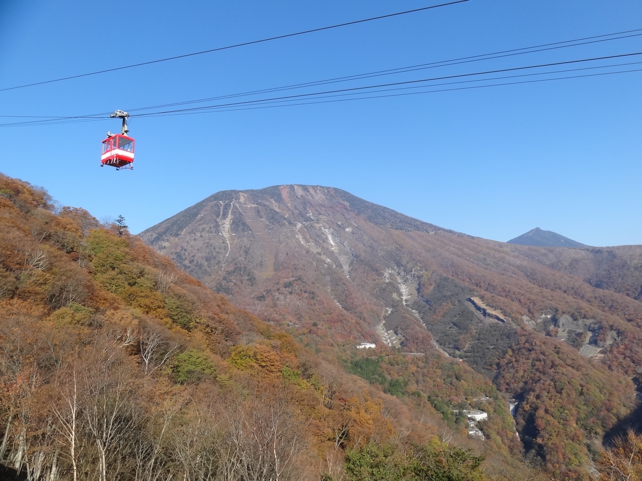 第二いろは坂・明智平付近の紅葉はやや褐色ぽい感じでしたがまだまだ綺麗。明智平の駐車場はほぼ満車でロープウエイ待ちの大行列‥100人位は居そう。通常より早く8:45に運行開始、動き始めたロープウエイは人でギュウギュウ‥やめとこ。