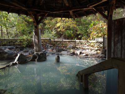 日帰り入浴利用、大人500円(タオルなし)。川と柱状節理・紅葉し始めた木々が見える開放的な露天風呂、温泉は加温加水一切なし。寒い日だったのでややぬるめ。硫黄臭のする白い濁り湯で、肌がツルツルに。いいお湯です。