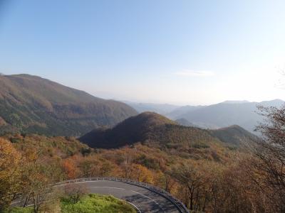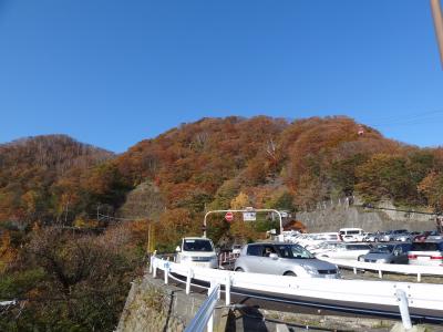紅葉は特に下り第一いろは坂の中腹が綺麗でした。カーブの向こうに紅葉した山が迫る!車を停めてみられないのが残念‥。第一いろは坂‘剣が峰駐車場’は狭く(4台くらいしか停められない)のですが丁度1台空きできたので迷わず寄り道。黄色・赤に色づいた紅葉が美しい!ツイてた~!