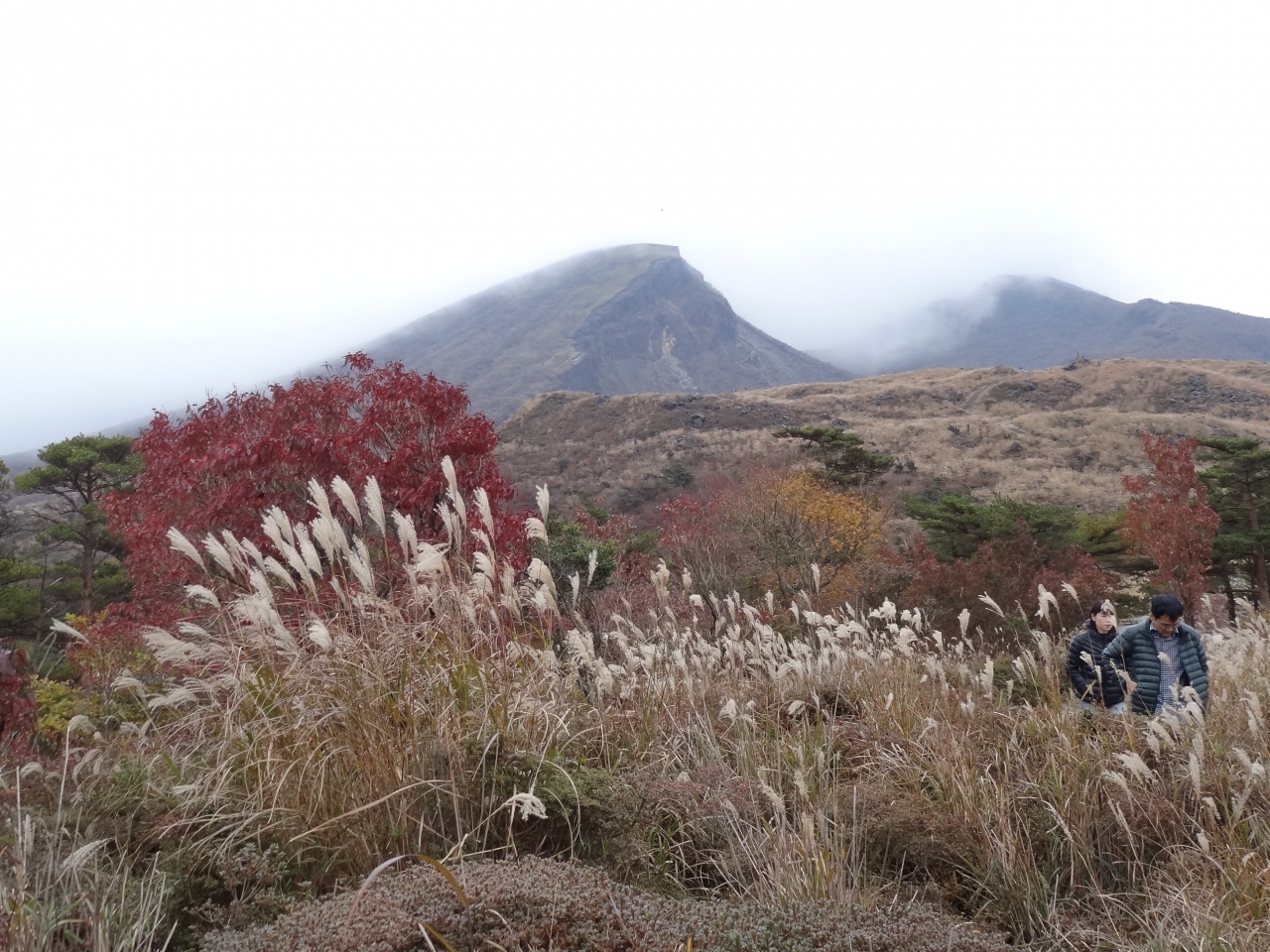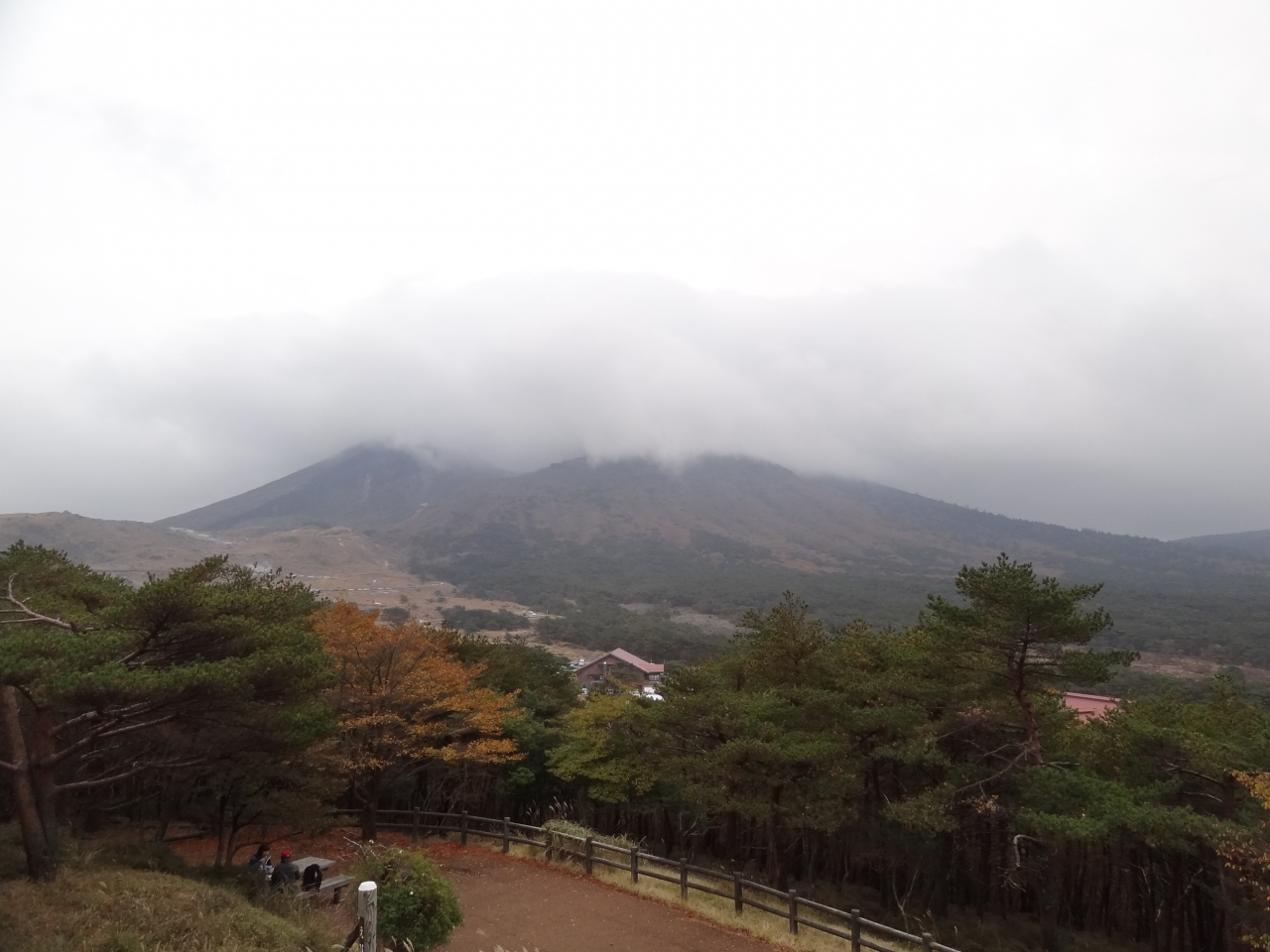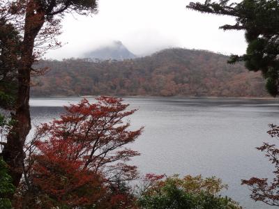 途中展望台3か所(えびの展望台・二湖パノラマ展望台・六観音御池展望台)。小雨交じりの残念な天気だったのと、長い残暑の影響で紅葉イマイチ‥残念でした。