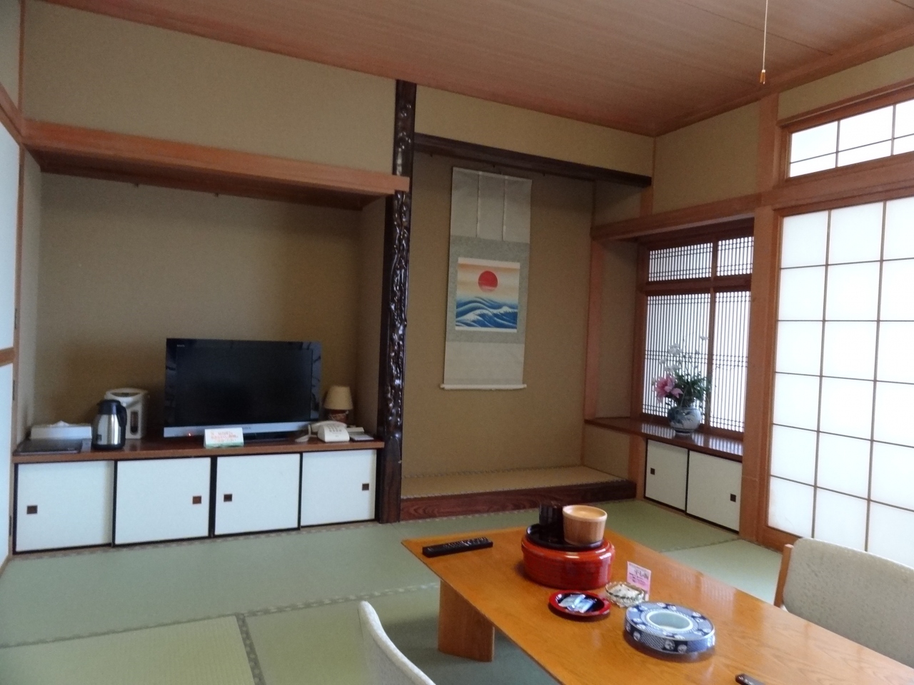 夫婦2名で1泊、1階‘かえで’。広縁付の10畳、広い和室でとても清潔。窓は庭園に面していてその先に海が見えます。ゆっくりできました。トイレ・ユニットバスは別。