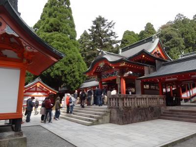 境内は人だらけ、手水舎で手洗いするにも・参拝するにも・御神木の写真を撮るにも長~い列、さざれ石の前には団体客。天気が悪かったので展望台から桜島は見えず‥。残念でした。- 旅行時期