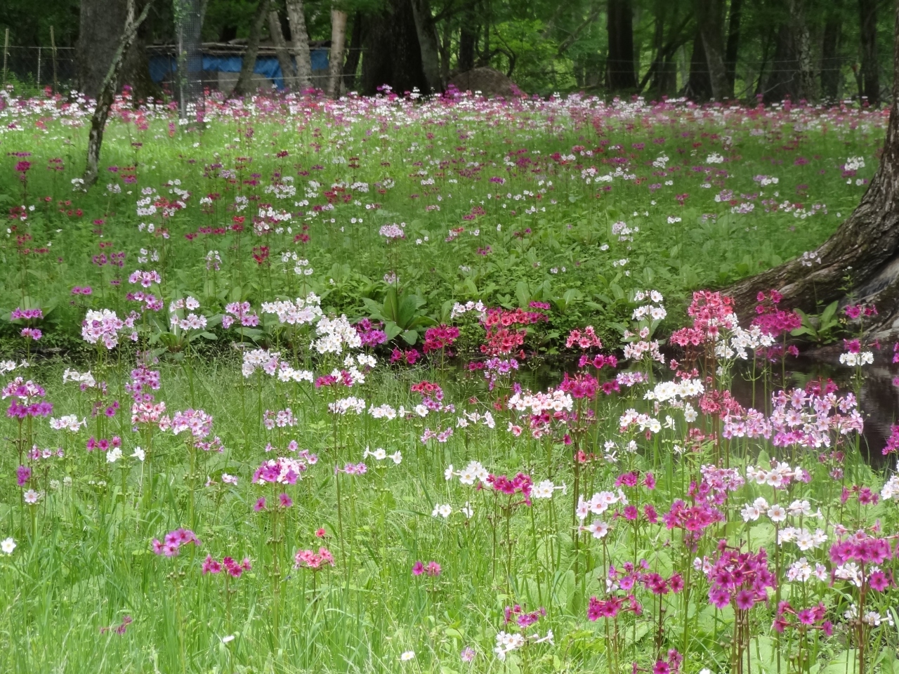 クリンソウの茎部分を鹿が食べてしまうため、防鹿ネットが群生地まわりにグルリと張り巡らされています。クリンソウ保存のために尽力されている方々の努力と苦労があって見られる美しい風景、マナーを守り見学しましょう。募金にも是非ご協力を。