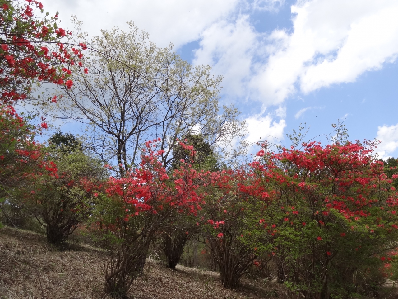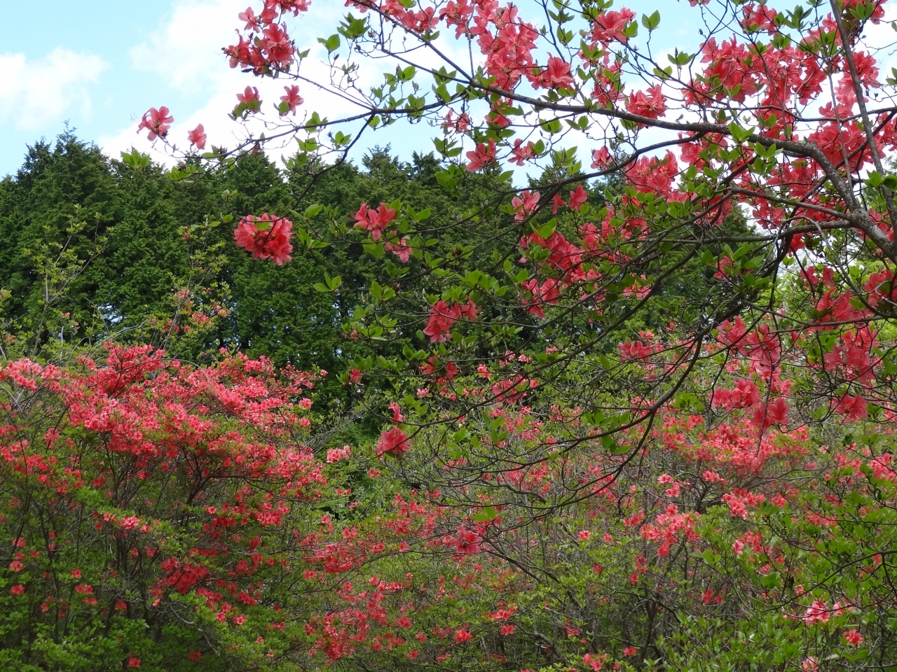 今年はヤマツツジの花付きが例年より少なく、急に暑くなったためか花期も短かったとのこと。5月半ばは茶色っぽい花が多く見頃が過ぎていた感じ‥でも赤い花はとても綺麗でした。- 旅行時期