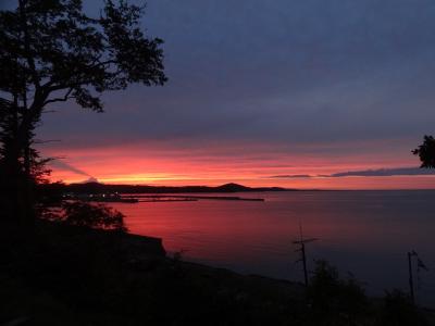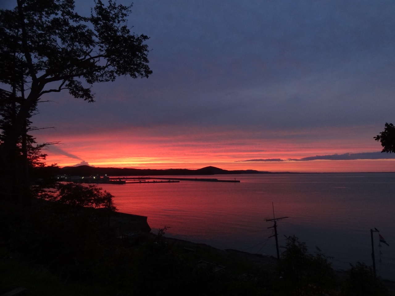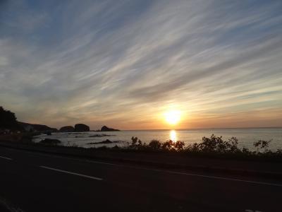 知床・ウトロ湾を見下ろす高台にあります。全室ウトロ湾(海側)に窓があり、ここからの眺めは素晴らしかった!隣接するキャンプ場に‘夕陽台’という展望台、でも夕陽観賞の人でいっぱい‥。客室からほぼ夕陽台から見るのと同じ‘ウトロの落日’をみることができて本当に良かった~。