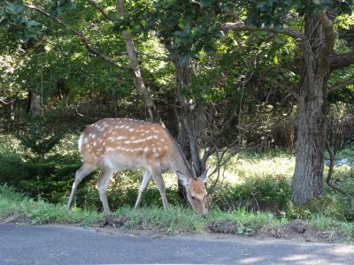 道道93号線、知床五湖入口付近はかつての開拓地で離農した跡地。草原になったこの場所は、全国から募金を募って土地を買い上げ以前の森に戻すナショナルトラスト運動‘知床100平方メートル運動’が行われ、森の姿を取り戻しつつあります。鹿が多く、よく見かけました。