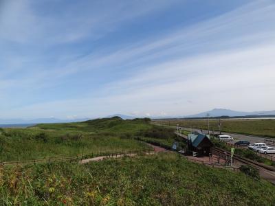 小清水原生花園の東㟨にある‘はなやか(葉菜野花)小清水’、国道244号線沿いにありJR釧路本線‘浜小清水’駅と直結。建物内に小さなスーパーみたいな売店があり、お弁当や飲み物が買えます。斜里岳が綺麗に見えるビューポイントでした。