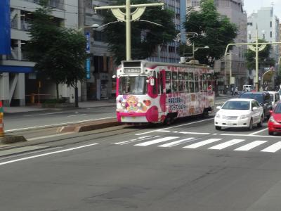 初札幌、北海道内は道南しか行ったことがなく、路面電車というので函館市電を連想していましたが‥JR札幌駅前からは乗れません。札幌駅には地下鉄があるので確かに路面電車は必要ないのですが‥すすきの駅でピンクの牛柄車両をみてちょっとビックリしました。