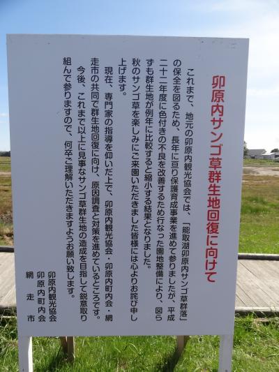 国道244号線沿い、網走市の東に位置。オホーツク海と濤沸湖に挟まれた砂丘に野生の花々が咲く‘自然の花畑’として有名。花の見頃は6〜8月。訪問した時は既にシーズン終わり花はなく‥9月半ばだから当然。12?に渡る広大な砂丘に沢山の花が咲く時期は本当に綺麗でしょうね、是非見てみたい。
