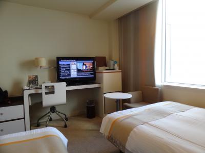 ツインルーム401号室に一人で宿泊(予約はシングルでしてました)、北海道大学が窓から見える部屋。部屋自体は普通の広さですが、天井が高いのでゆとりを感じます。ブラウン・ベージュ・グリーンを基調にコーディネートされた部屋でとてもくつろげました。一番良かったのはバスルーム、広くて足を伸ばせて入れる大きなバスタブ!素晴らしい。