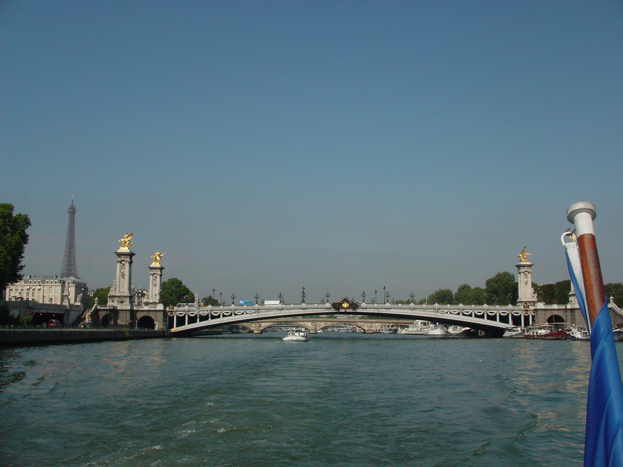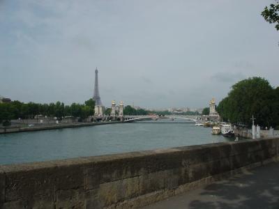 セーヌ川にかかる橋はいくつもありますが、一度観たら決して忘れない個性的かつ美しい橋でした。両側に金色の彫刻、華やかです。アレクサンドル三世橋と背後にそびえるエッフェル塔の姿‥画になる風景、最も印象に残る橋。