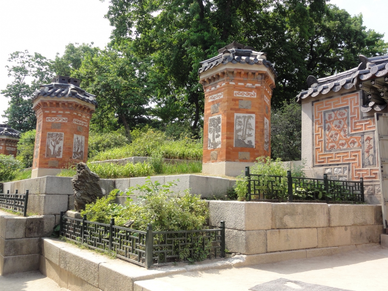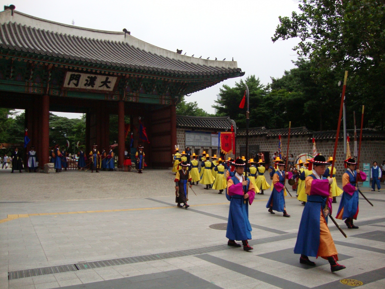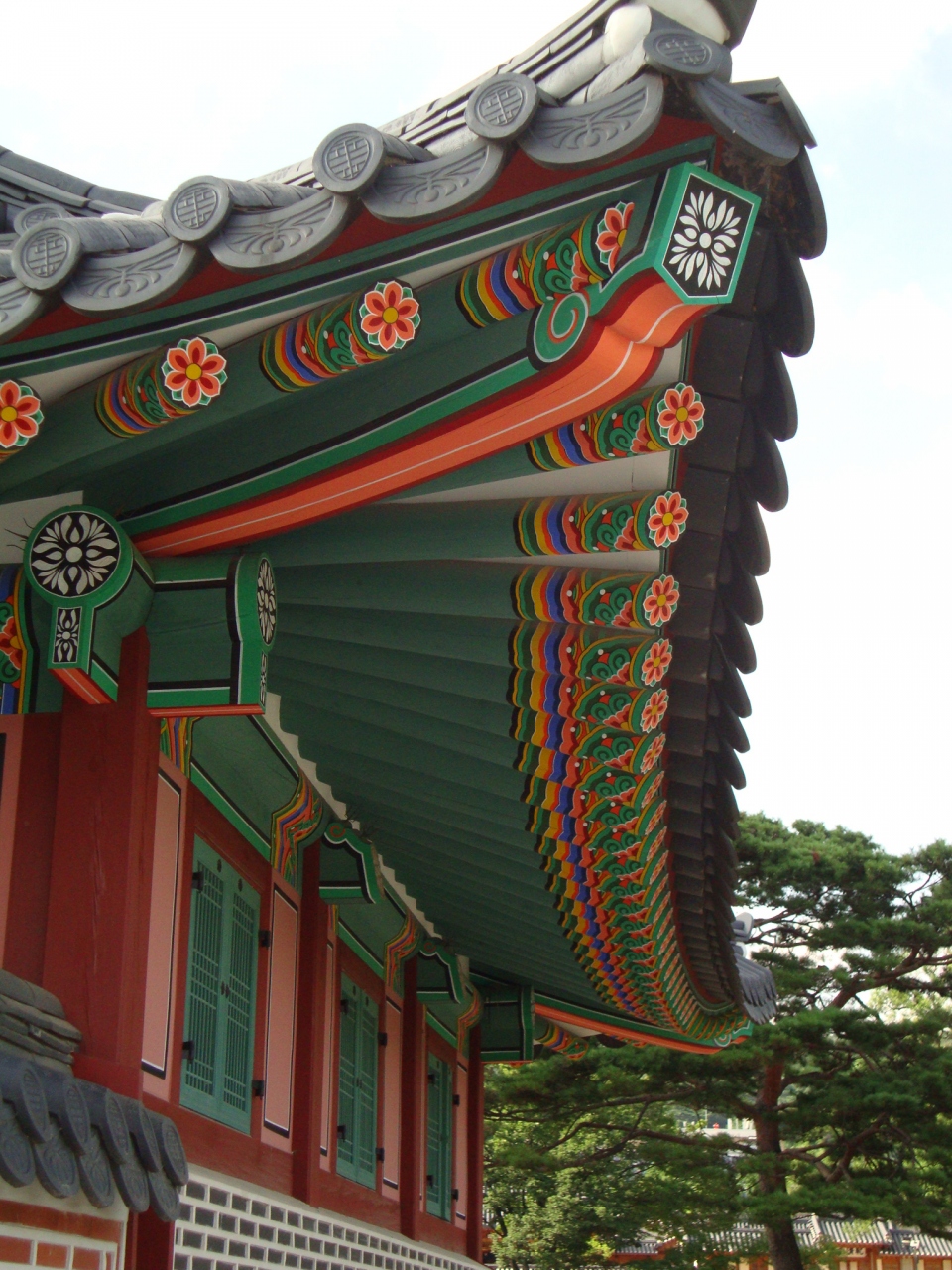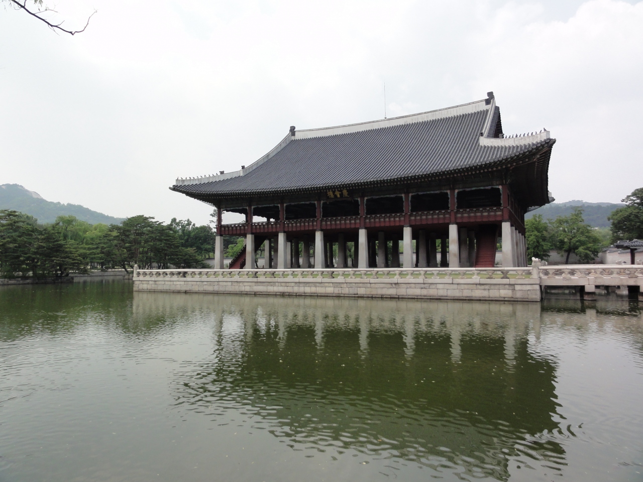 最初は7代まで遡り王と王妃の神位(位牌)を安置し時期を過ぎれば永寧殿に移したそうです。李朝中期から現在の安置方法に変わり、位牌が増えるにつれて正殿の規模も大きくなり、その結果‘単一木造建築物で世界最長’になりました。(東西の幅101m)現在安置されているのは王19人、王妃30人。位牌を保管する部屋19間が中央、両脇にそれぞれ部屋2間、直角に曲がる楼閣を立てた建物。儒教思想に基づく独特の建築様式は整然としていて荘厳、王宮とはまた違う重厚感がありました。- 旅行時期