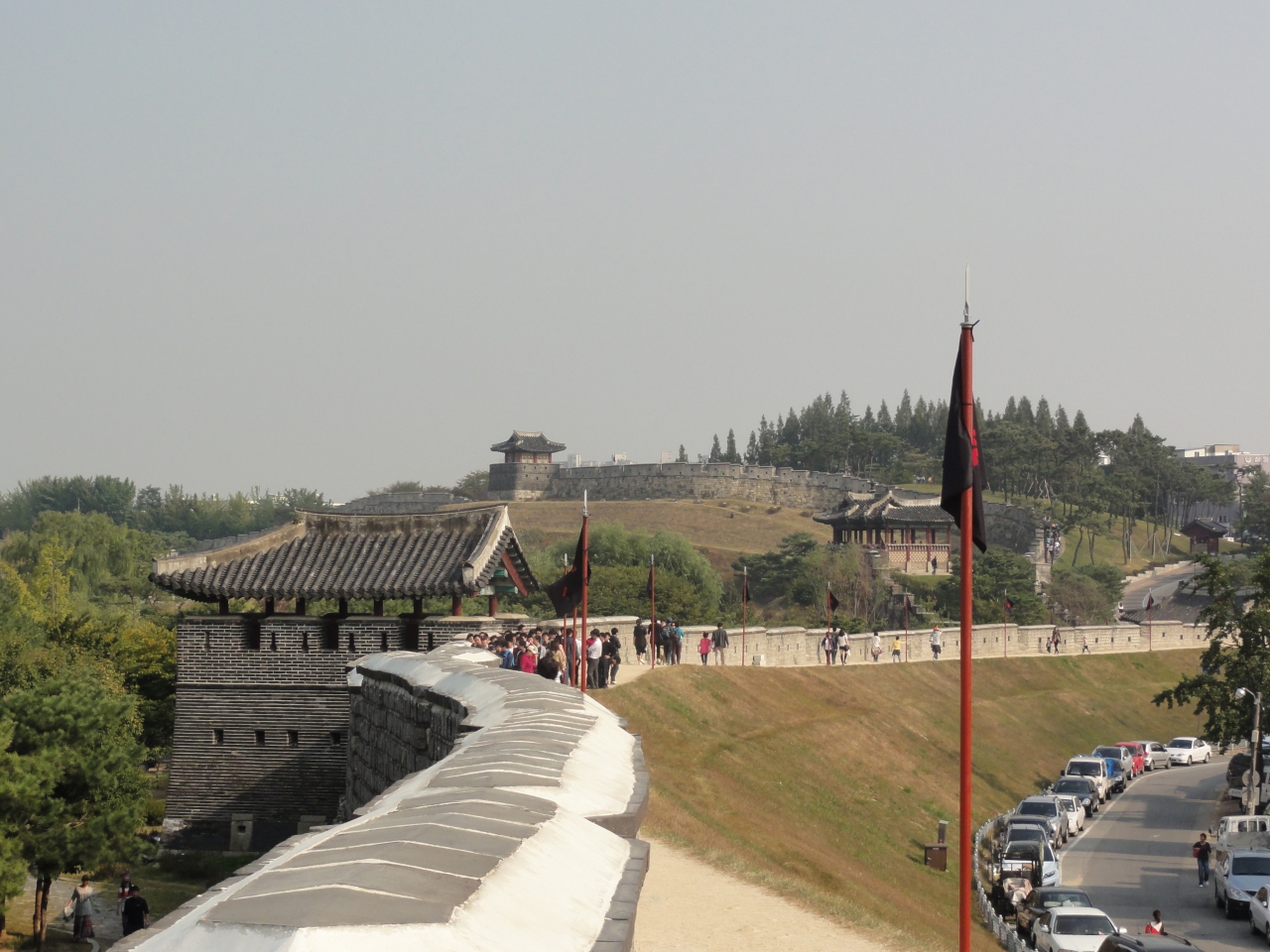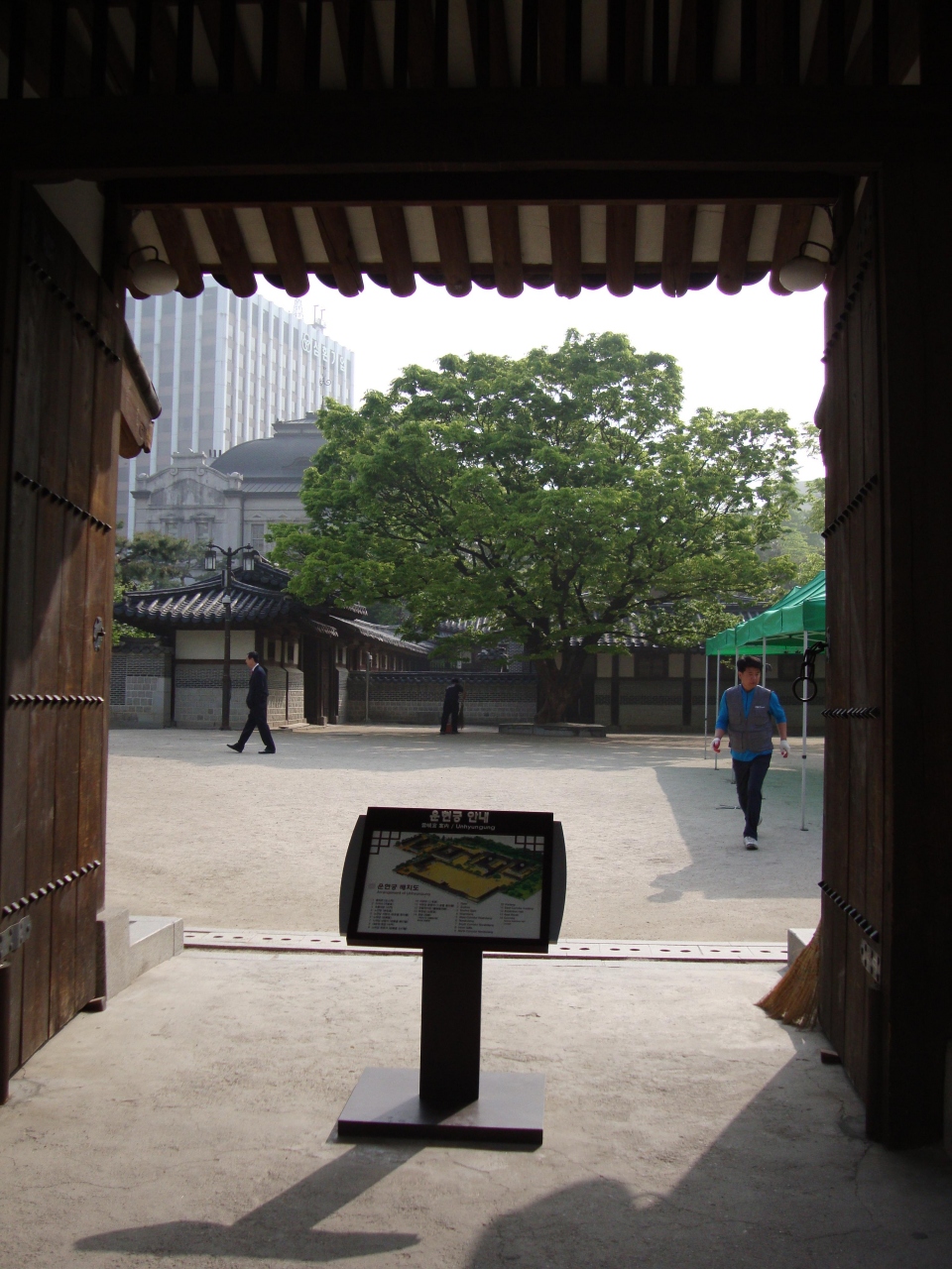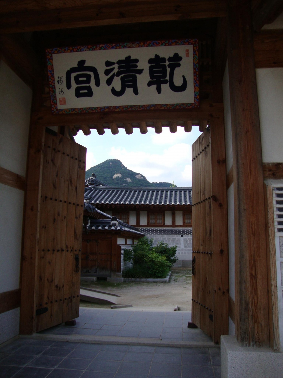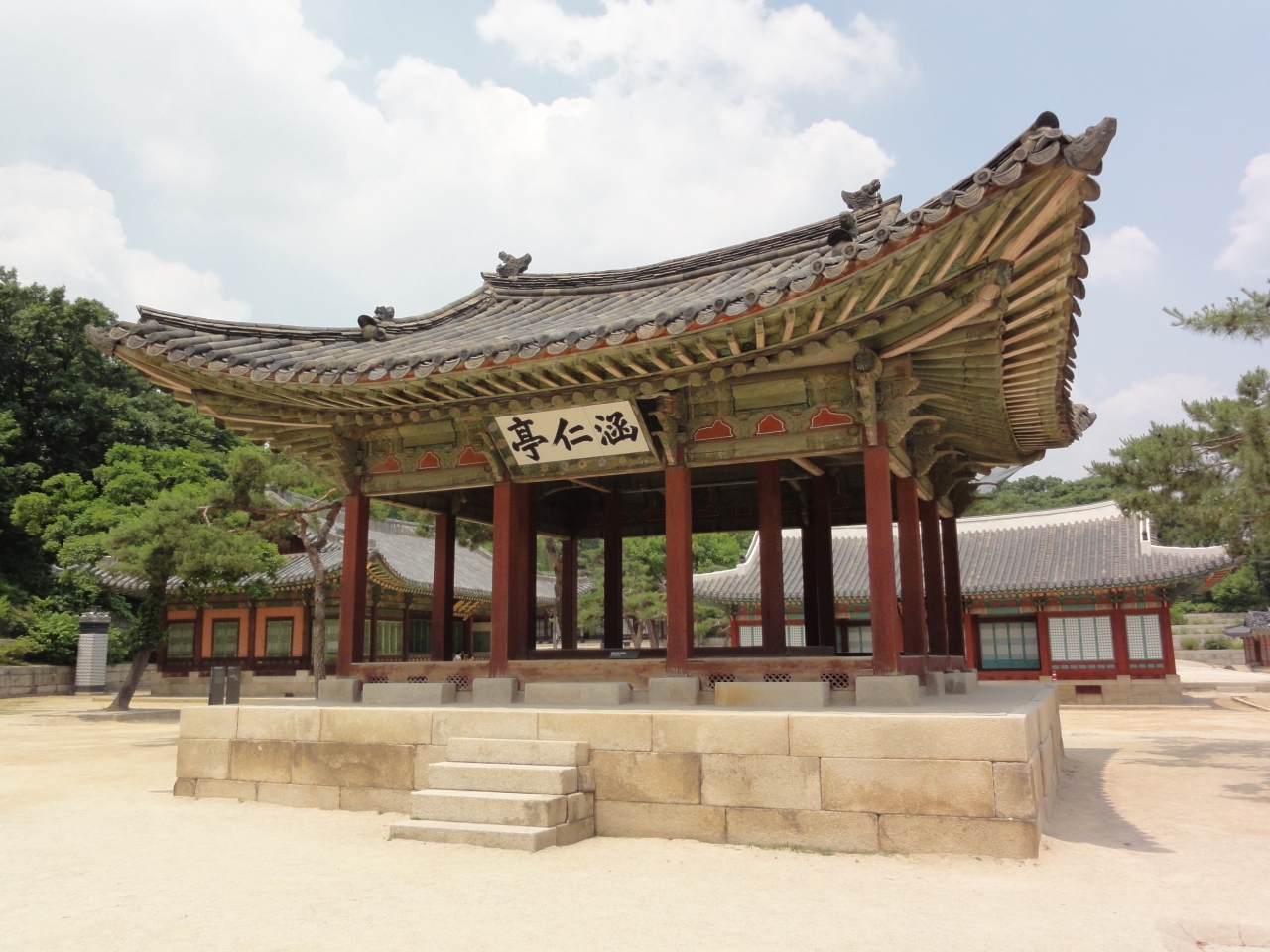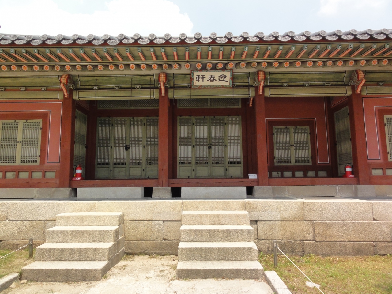 最初は7代まで遡り王と王妃の神位(位牌)を安置し時期を過ぎれば永寧殿に移したそうです。李朝中期から現在の安置方法に変わり、位牌が増えるにつれて正殿の規模も大きくなり、その結果‘単一木造建築物で世界最長’になりました。(東西の幅101m)現在安置されているのは王19人、王妃30人。位牌を保管する部屋19間が中央、両脇にそれぞれ部屋2間、直角に曲がる楼閣を立てた建物。儒教思想に基づく独特の建築様式は整然としていて荘厳、王宮とはまた違う重厚感がありました。- 旅行時期