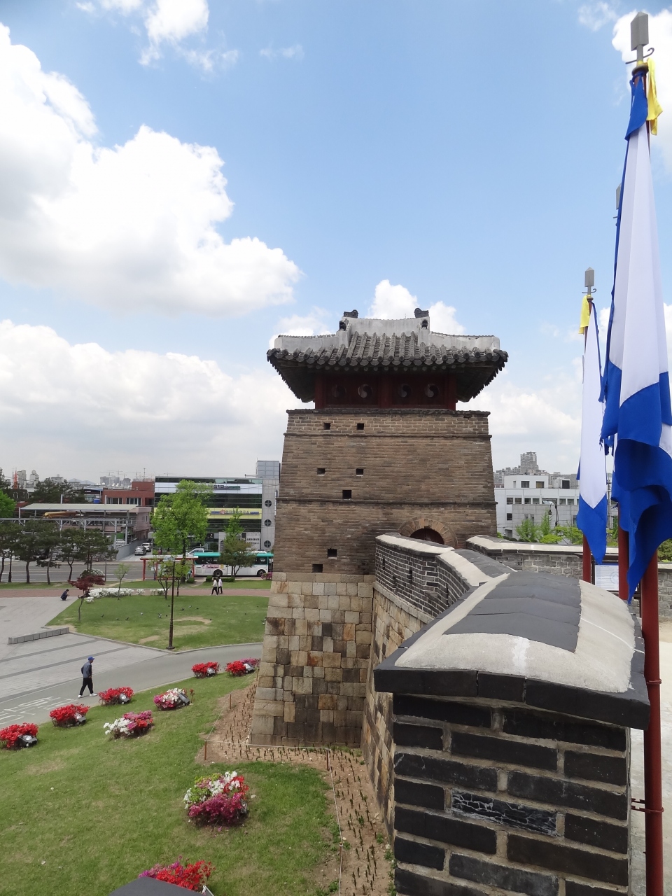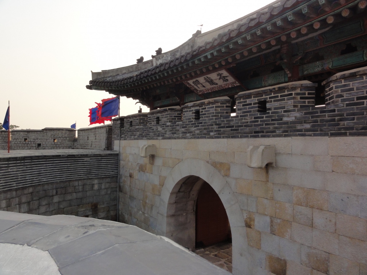 水原華城の東門。南の‘八達門’西の‘華西門’北の‘長安門’と同様、虹門の上に楼閣があり城甕でぐるりと囲まれています。水原華城の4つの大門の中では最も小さい門だけど、ここから練武台・東北空心ドン・ぐるりとめぐらされた城壁が良く見えるのがとても良かったです。