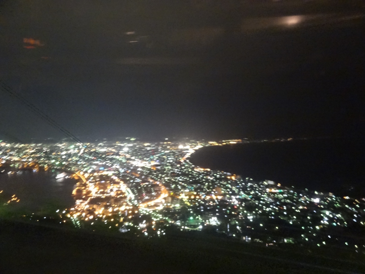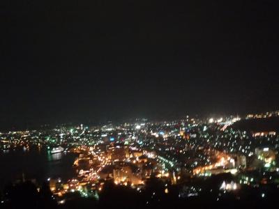 函館山登山道路の視界の開けた場所(3か所)でスローダウン。ロープウエイから見る夜景とは一味違って、間近に迫る夜景は迫力あり素晴らしかったです。行きは右側、帰りは左側の席がお勧め。