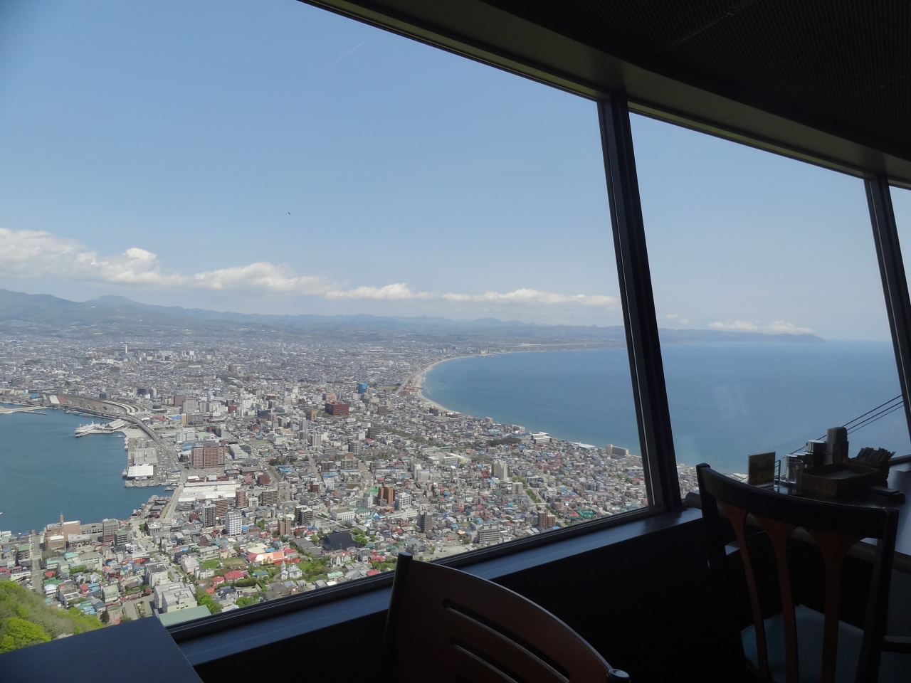 市街地側は全面ガラス張り、ここからの眺めは本当に素晴らしいです。