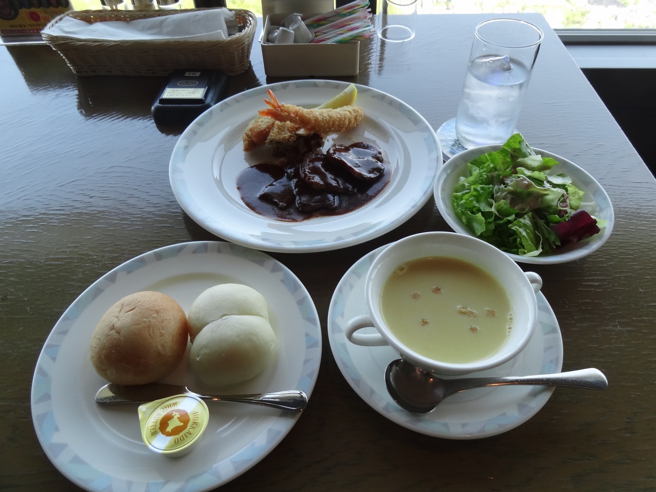 定番のアイスクリームではなく、レストランで食事しました。主人は「牧場のビーフシチューセット」私は「ホワイトシチューセット」。