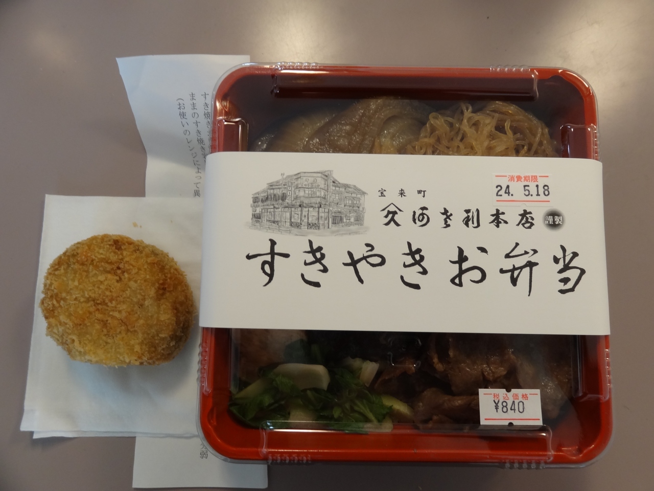 コロッケ1個70円、シューマイ1個60円、すき焼き弁当840円