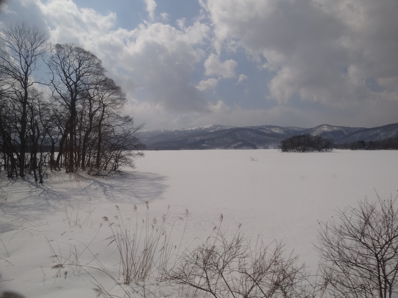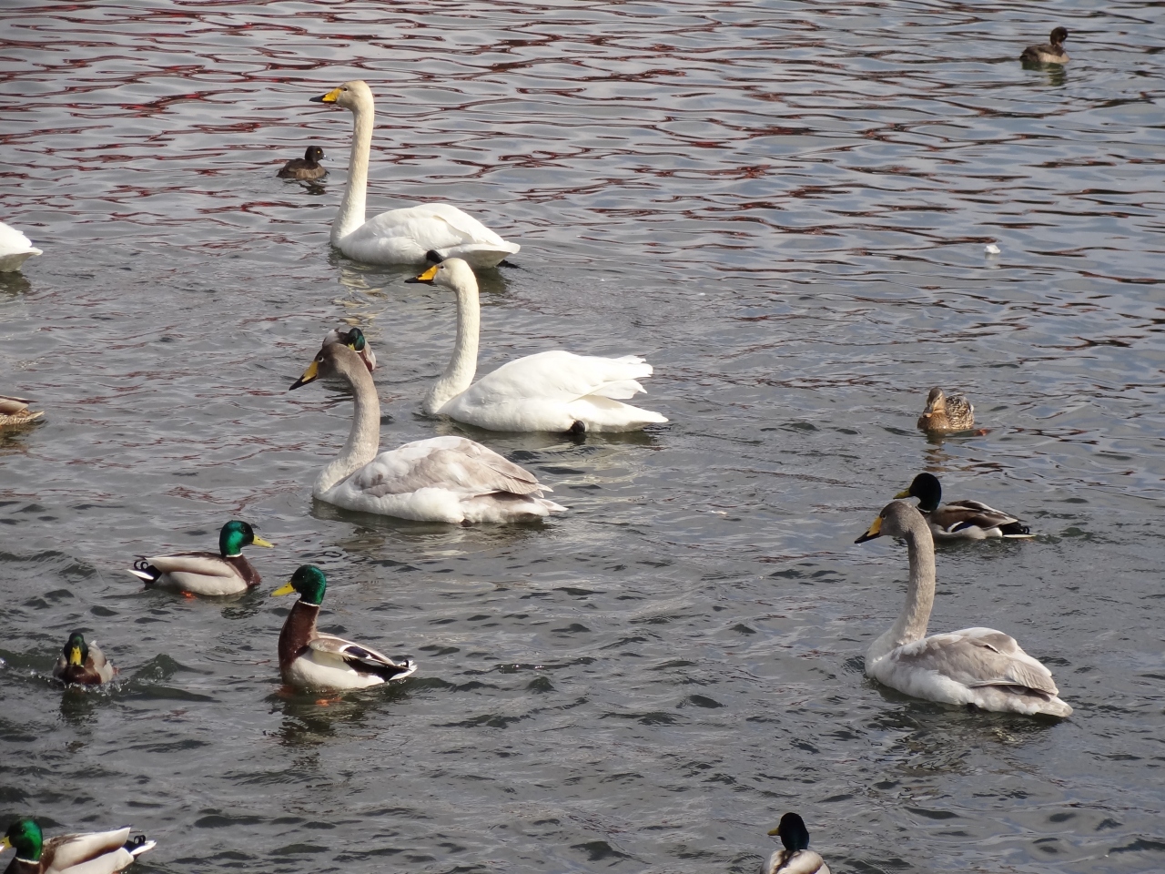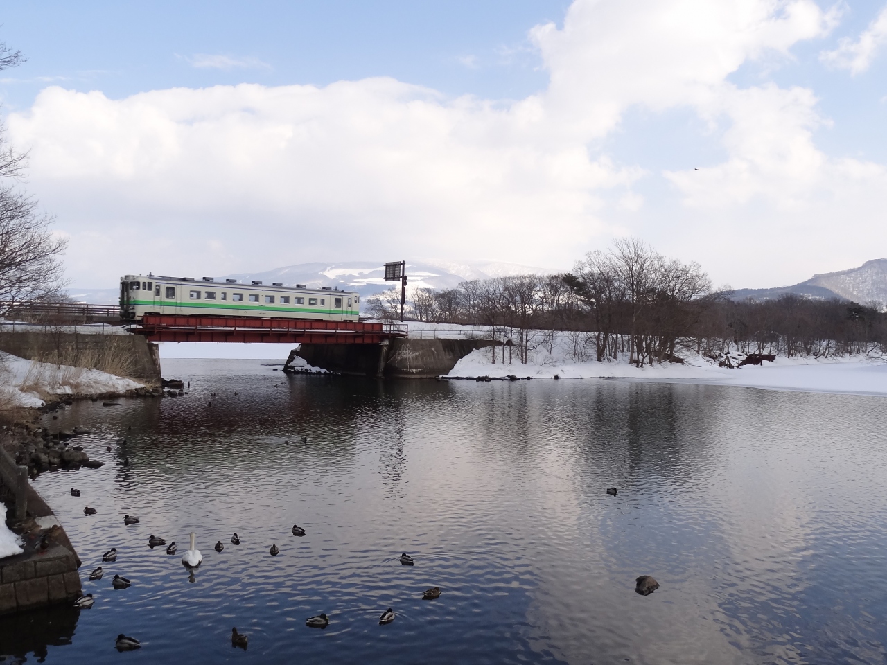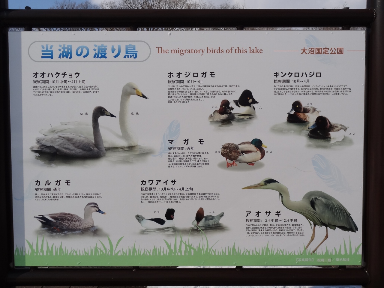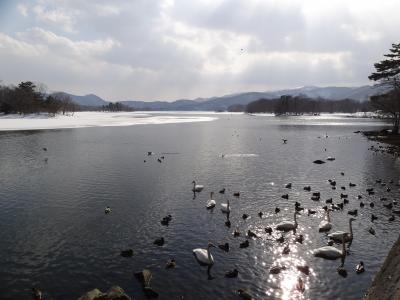 小沼に発電所の取水口があり、大沼から小沼への水の流れがあるため、冬でもこの場所は凍結しません。なので毎年12月から3月にオオハクチョウやマガモ、カルガモなどの水鳥が多く飛来して羽を休めています。3月末は数は少なくなったとの話でしたが、水鳥が集まっていました。電車が来なければ人工的な音が全くなく、風の音と鳥の声しか聞こえない。羽ばたきが聞こえ上を見上げると空を悠々と白鳥が飛んでいて‥冬景色をぼんやり眺めていただけですが、かなり癒されました。餌付けの人がくると様子が一変、白鳥・鴨・烏が激しく鳴いて餌を奪う争奪戦‥生きていくって大変なのね‥。