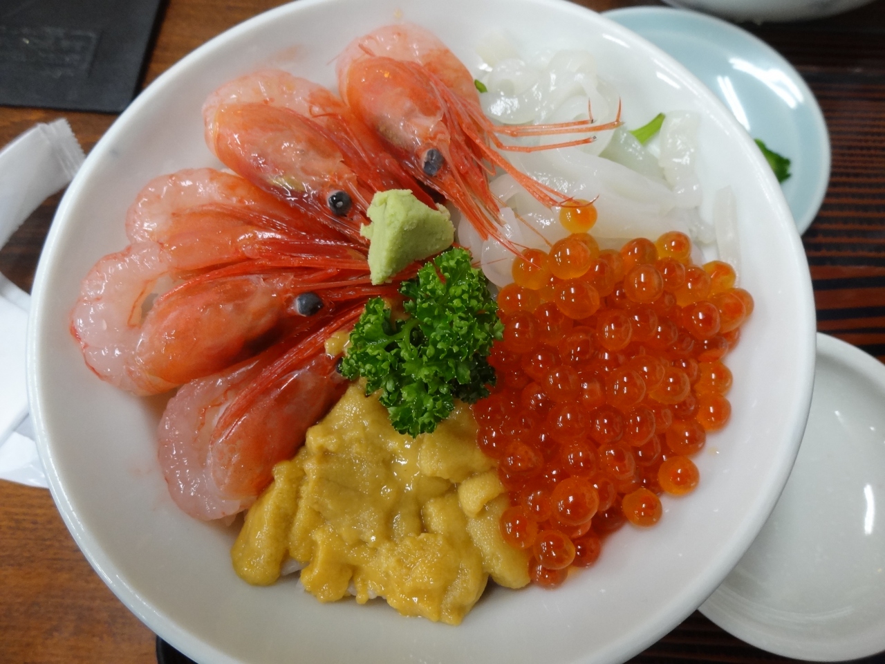 主人は‘スぺシャルウニ丼’私はウニはあまり沢山食べられないので(油っぽさで気持ち悪くなる)‘スペシャルうしお丼’をオーダー。トロリとして甘~い生ウニ!濃厚だけど臭み全くなく変にしつこくない。こんな美味しいウニは初めて食べました。これだったら沢山食べられそう‥。