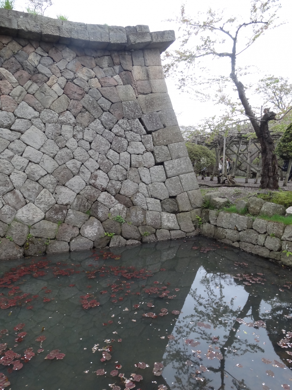 敵がどの方向から攻めてきても死角にならないよう5つの角を造り大砲を設置(稜堡)、ぐるりと堀と石垣で取り囲まれていて、その石垣には敵兵が登れないよう‘武者返し’‥敵の侵入を想定した工夫が見られます。