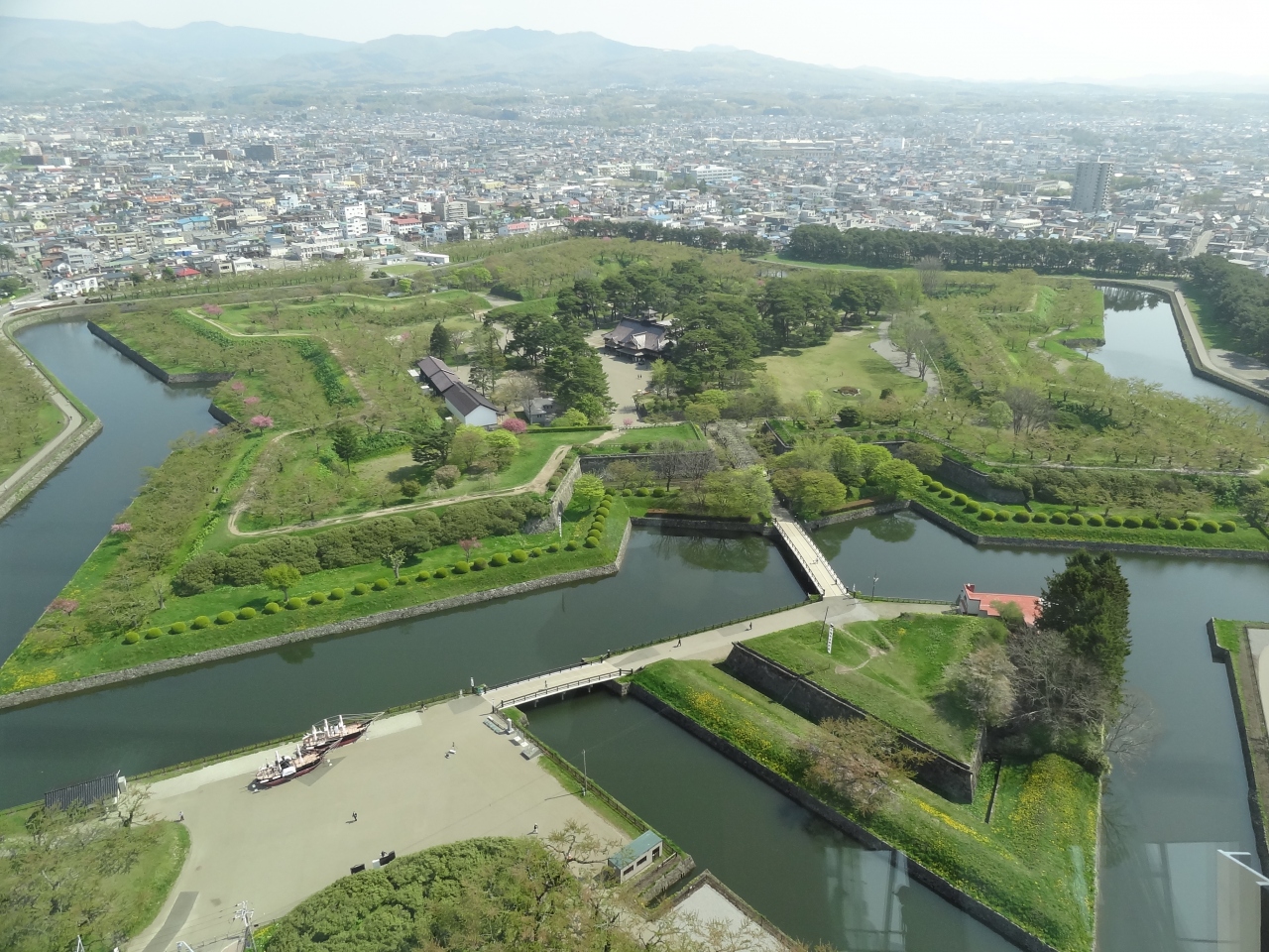函館開港にあたり江戸幕府により設置された函館奉行所を防御するため造られた城壁。日本の城郭には珍しい‘星形’、ヨーロッパの城塞都市をヒントに築かれたそうです。