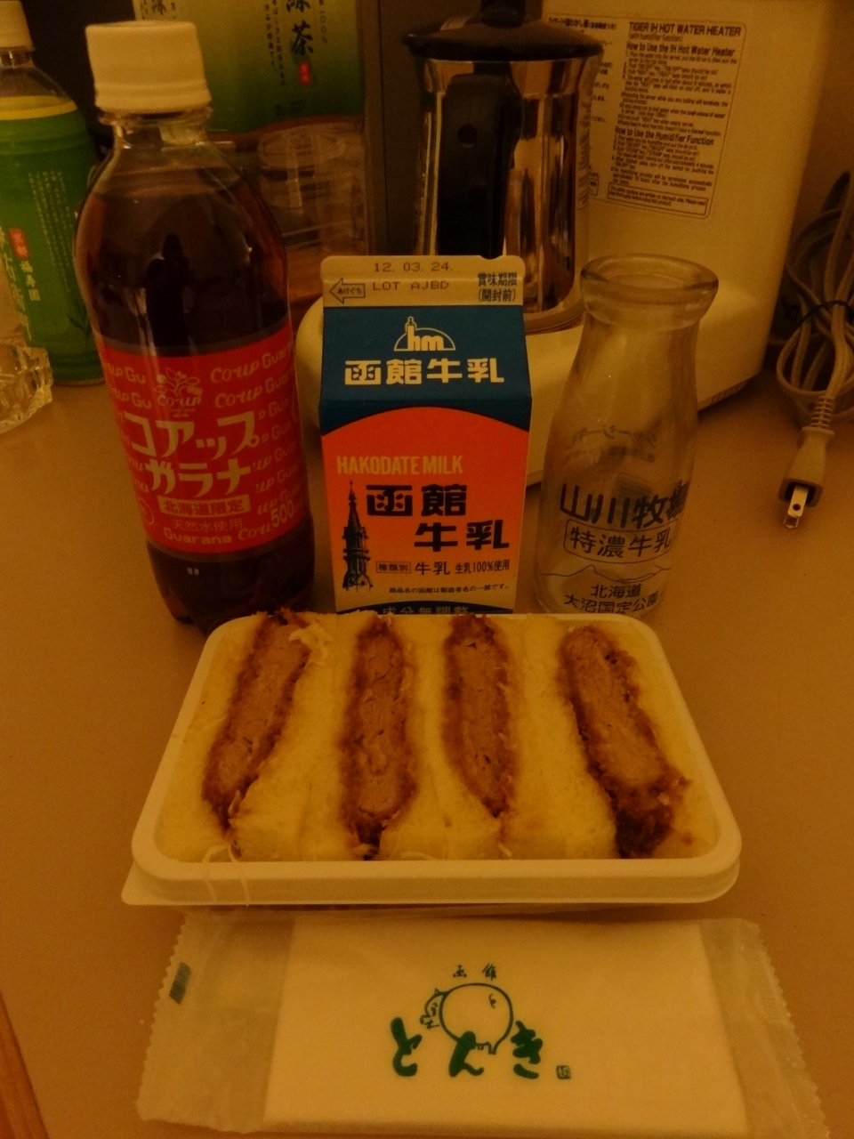 おかみさん?が「そちらに座ってお待ちください」と熱いお茶をだしてくれました、外が寒かったから心遣いが嬉しい。カウンターの中で職人っぽい渋いお父さんが黙々と作ってくれてる。小麦の風味が感じられる柔かなパン、お肉しっかりのカツ、甘いソース・辛子のバランスもいい。羽田空港で食べたヒレカツサンドとはさすがに違う、美味しかった!- 旅行時期