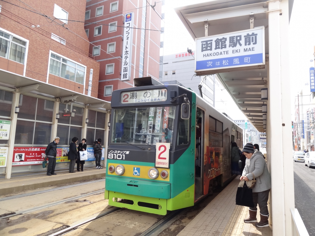函館駅前と市役所前の間はさほど遠くはなく、宿泊したホテルリソル函館は両駅の間にあったので、函館山方面への往来によく利用しました。- 旅行時期