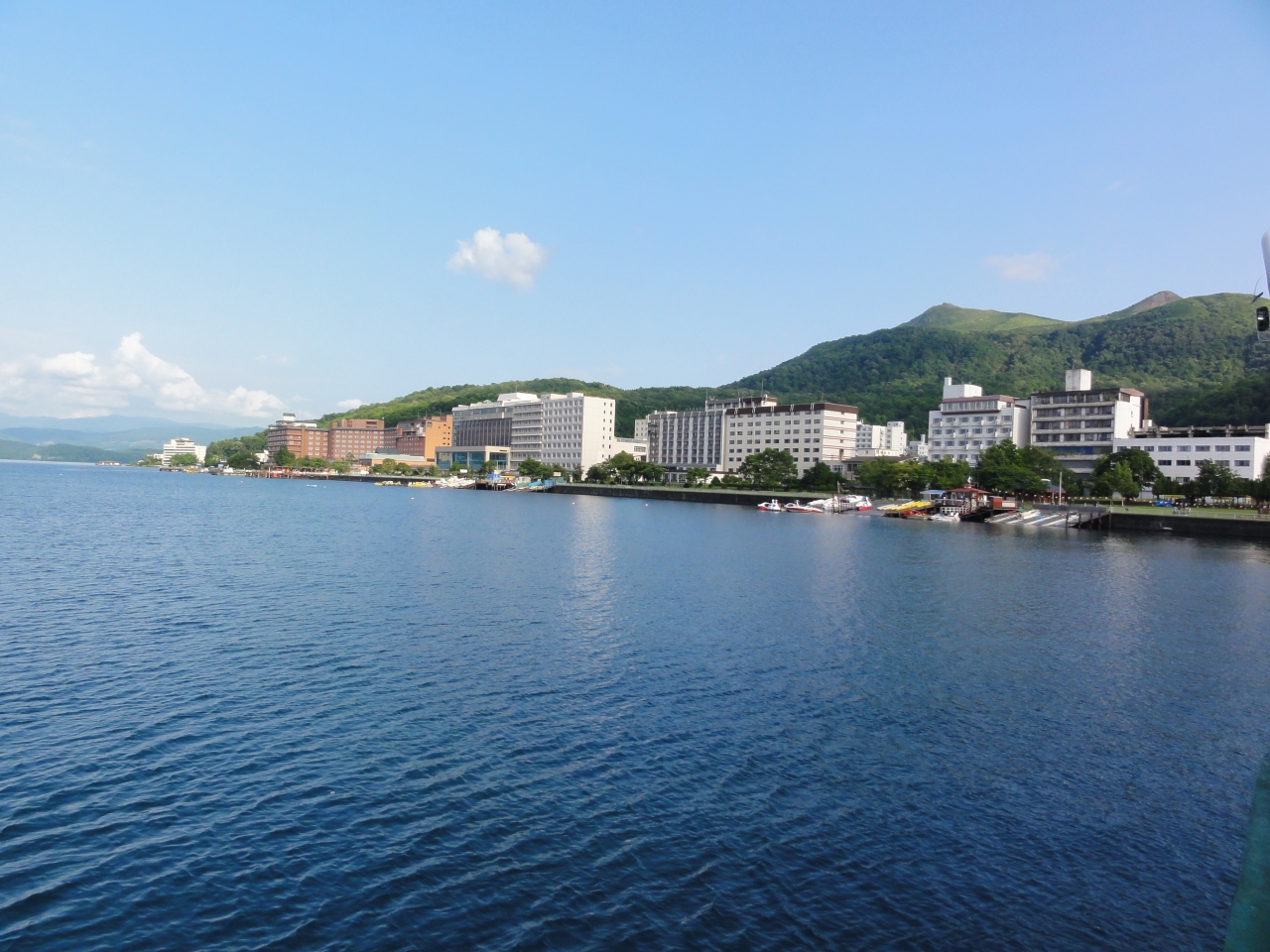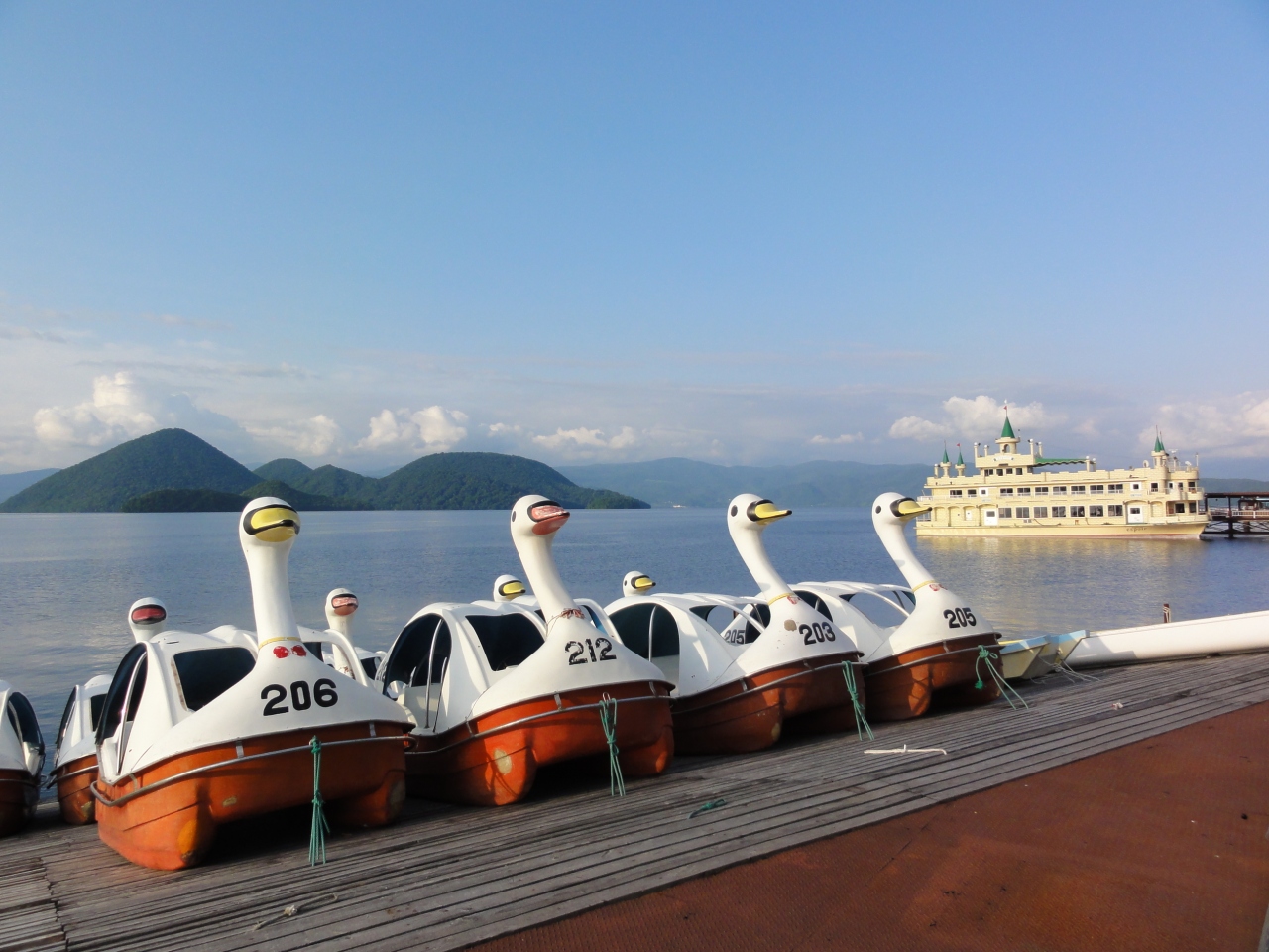 温泉街からは1つに見える島が3つの島から構成されていることが遊覧船に乗るとよくわかります。船上から昭和新山や有珠山、羊蹄山の姿も見えました。洞爺湖は火山が生み出したカルデラ湖、この周囲は活火山が生み出した自然が数多くある場所なのだと実感。