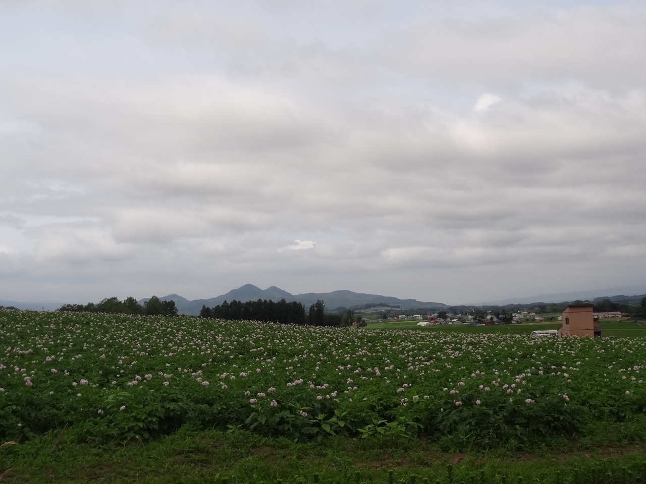 百合見頃にはまだ早い7月。目の前に広がるジャガイモ畑、白や薄紫の花が沢山咲いていて綺麗。天候があまりよくなかったので羊蹄山は雲隠れ‥でもニセコ連山がよく見えました。フラワーパーキング脇にメロンの直売所、メロンやトマトがすごく美味しいです。熟したものは格安!とっても甘~い!お勧めです。