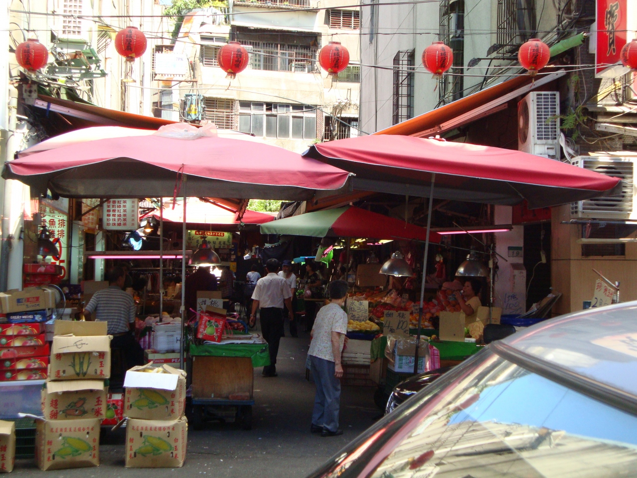 民権東路と中山北路の交差点を北に、バス停‘大同公司’を過ぎたところの右側に「晴光市場」の看板、ここを入ります。