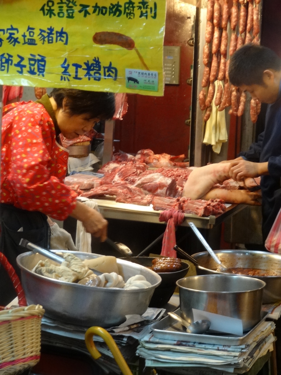 細い路地の両側に雑貨・日用品・アクセサリーやお菓子を扱う小さなお店がゴチャゴチャ並んでます。昔の御徒町みたい。突き当たるとアーケード、昔ながらの雰囲気の市場。雙城街付近には食堂やグルメ屋台(雙城街夜市)が沢山あります。