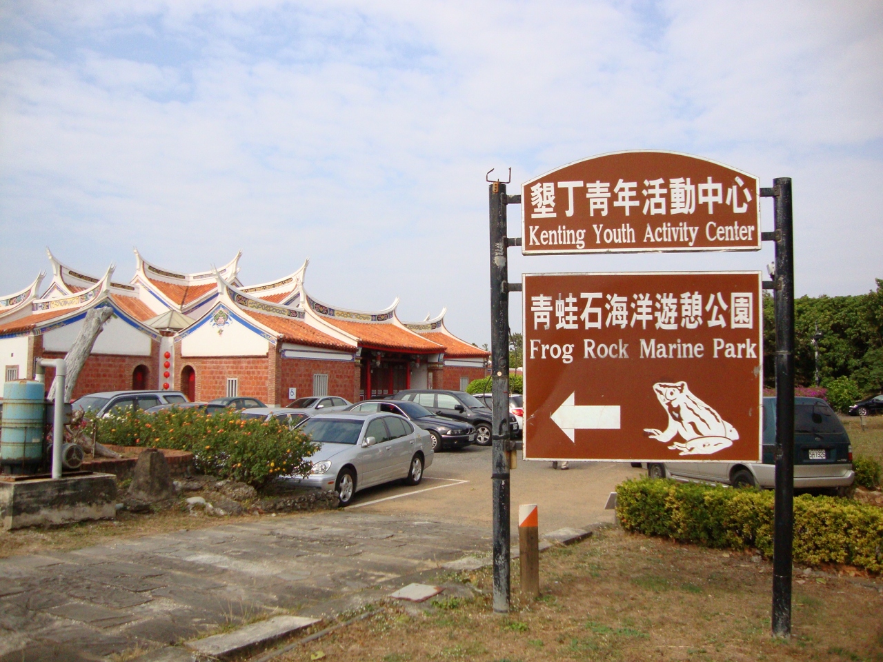 ホテル正面の小灣海水浴場の右側にそびえる青蛙岩、この周りをぐるっと回る海沿いの遊歩道がありました。墾丁青年活動中心を入ると遊歩道への案内看板あり。