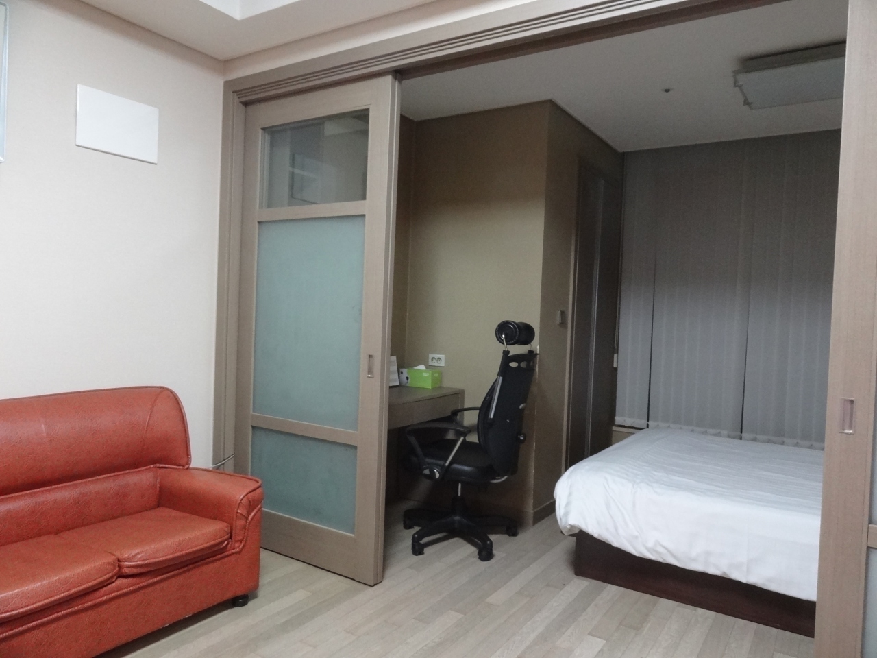 バス停(麻浦警察署)地下鉄5号線エオゲ駅至近、仁川空港バスリムジン6015番止まるし便利!ビル1階にコンビニンスストア(GS25)地下3階にSKプルガマサウナ、徒歩圏内にキンパ天国をはじめ飲食店、地下鉄孔徳駅(一駅、歩いても10分程度)地下にロッテマート。立地良し。
