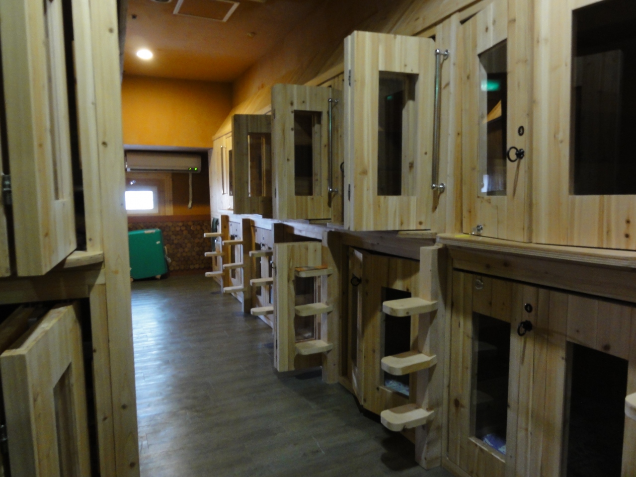 サウナ内の男女別カプセル、寝るだけ・節約旅行・プライバシーは気にしない人向き