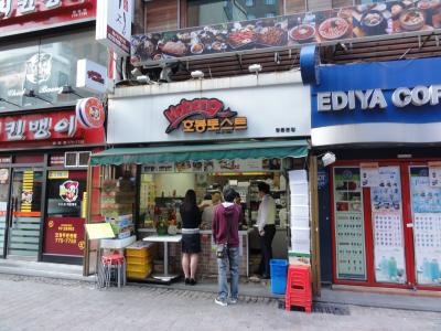 美味しいと評判のトースト専門店、明洞にあります。野菜の入った厚焼きオムレツの入ったトーストを食べました。作り立てを頂きましたが‥何となく全体的に水っぽい感じ。大きなみじん切りの野菜があるのでオムレツが崩れてしまい、ちょっと食べにくいかも。韓国の甘いソースに卵やチーズという組み合わせは大好きなので味は悪くなかったけれど、一度食べればいいかな‥。