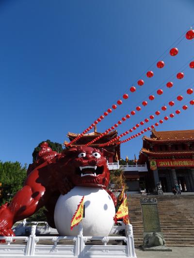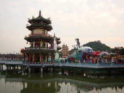 高鐵左営駅からアクセス。祝日で人がいっぱいでバスに乗れず徒歩で行きました。湖の北端‘孔子廟’まで20~30分。孔子廟から春秋閣などの中国式楼閣をまわってパンフレットでおなじみの龍虎塔へ、左営大路からバスに乗って左営駅に戻りました。