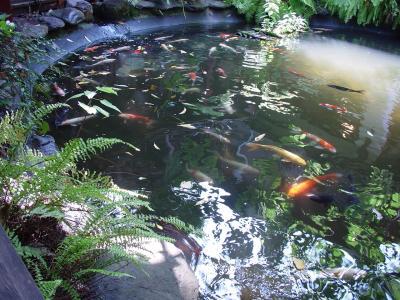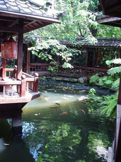 門をくぐった途端に街中とは別世界。風情があります。錦鯉の泳ぐ池を建物が取り囲んでいるので、席から池や緑を眺めてのんびりできます。