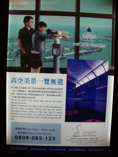 私の他に人がいなくて貸切状態‥プラネタリウムみたいになる綺麗なエレベーターも見晴のいい展望台も一人だと静かすぎて少し寂しい感じ。少しガスっていましたが360度高雄を見渡せました。高雄港付近が一望でき、前日に歩いた旗津や愛河・漁人埠頭などの位置関係を再確認しました。天気が良ければお勧めです。- 旅行時期