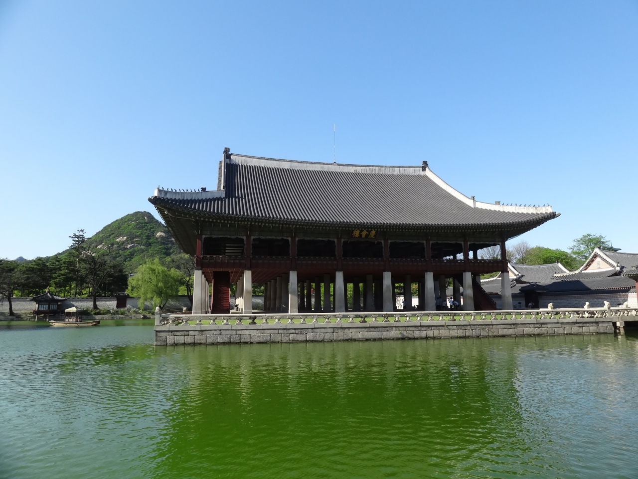 景福宮にあります。‘池に浮かぶように建つ’大きな建築物は現在他の王宮には現存していません。景福宮を代表する建物の一つと言えるでしょう。