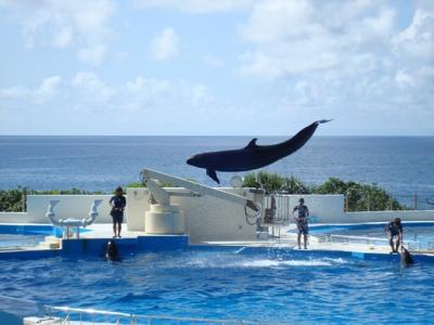 美ら海水族館は、いわゆる水族館の「ハコ」の外でも楽しめます。写真はイル...