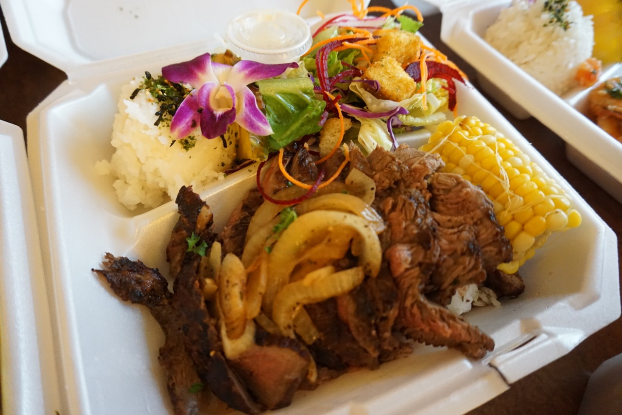 ガーリックリュリンプと、ステーキ、マグロを注文しました。ガーリックリュリンプは、とにかくガーリックが効いてますーー!テイクアウトにしました。なぜかトレイの2カ所にご飯が(笑)ご飯の量が多いので、ご飯ナシのほうがいいかもしれません。←ご飯ナシにできるそうです。