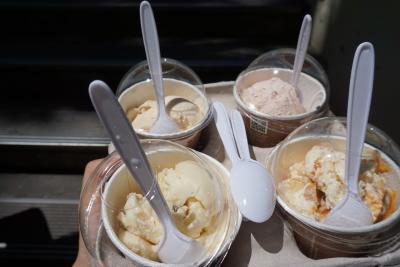 キャラメル、ローストバナナ、ピーナッツバターなど濃厚な味のものが多いです。が美味しいです。バニラビーンズもおいしかったです。コーンかカップか選べます。4つテイクアウトしたいと言うと、カップにしてくれてトレイに入れてくれましました。