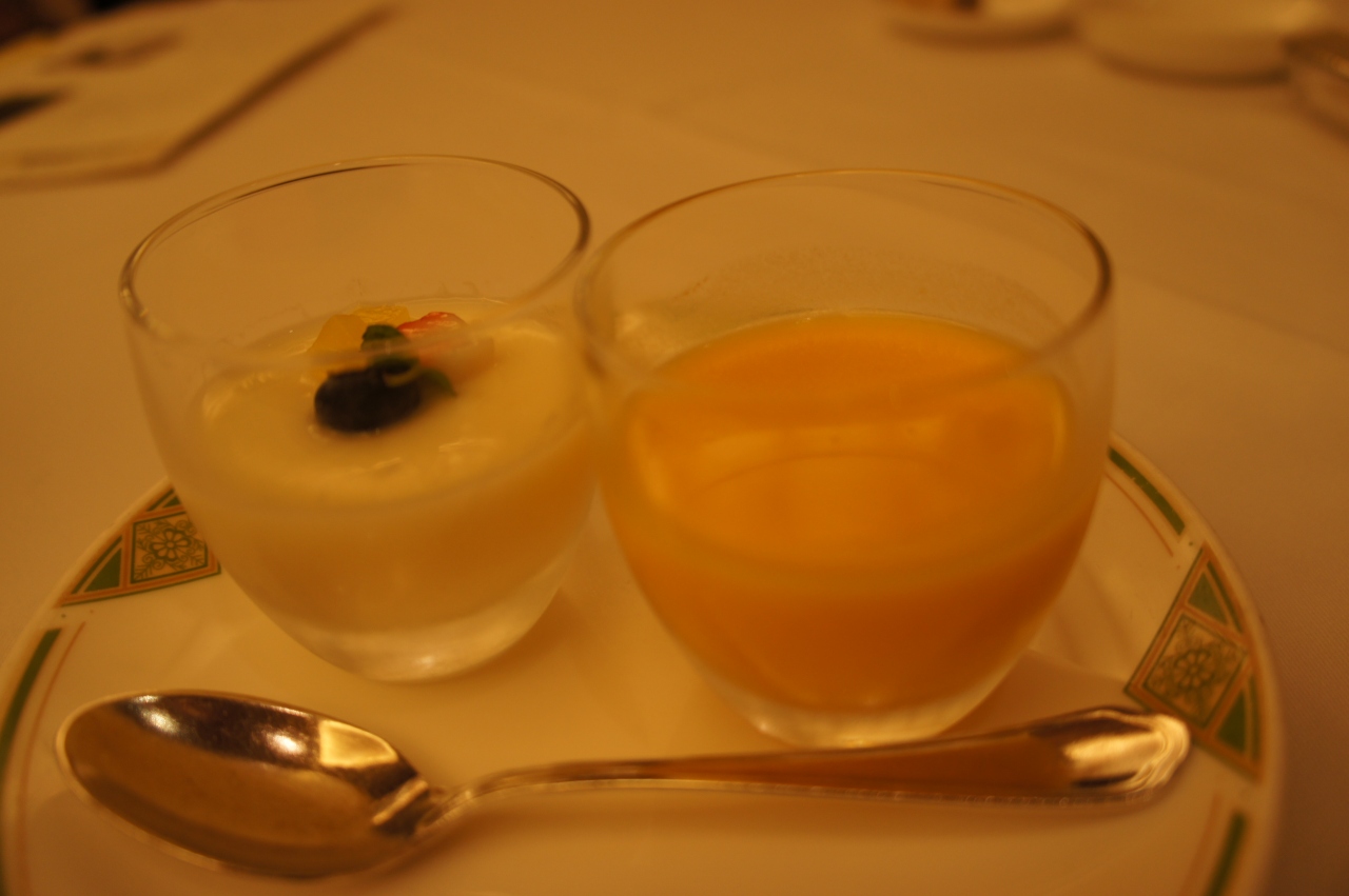 デザートの杏仁豆腐とマンゴープリン、さっぱりしていて美味しかったです。