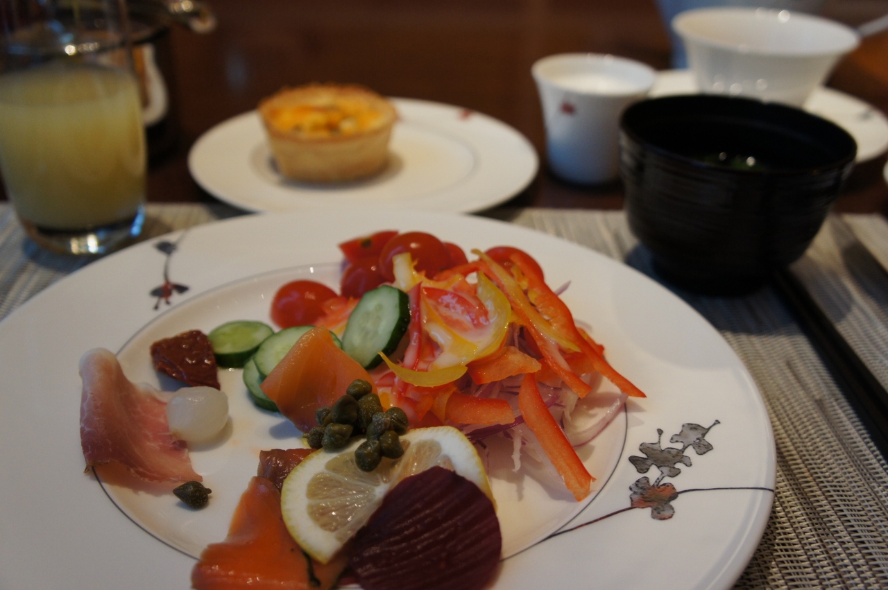 朝食時は定食ですが、シンプルですが滋味あふれるお料理に