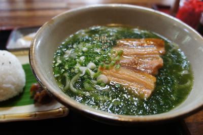 肝心のアーサそばは…スープもアーサもラフテーも美味しいのですが、