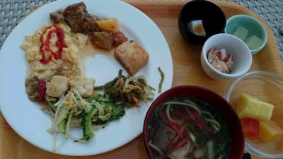 朝食は郷土料理もふんだんに用意され、デザートにブルーシールアイスクリームも。